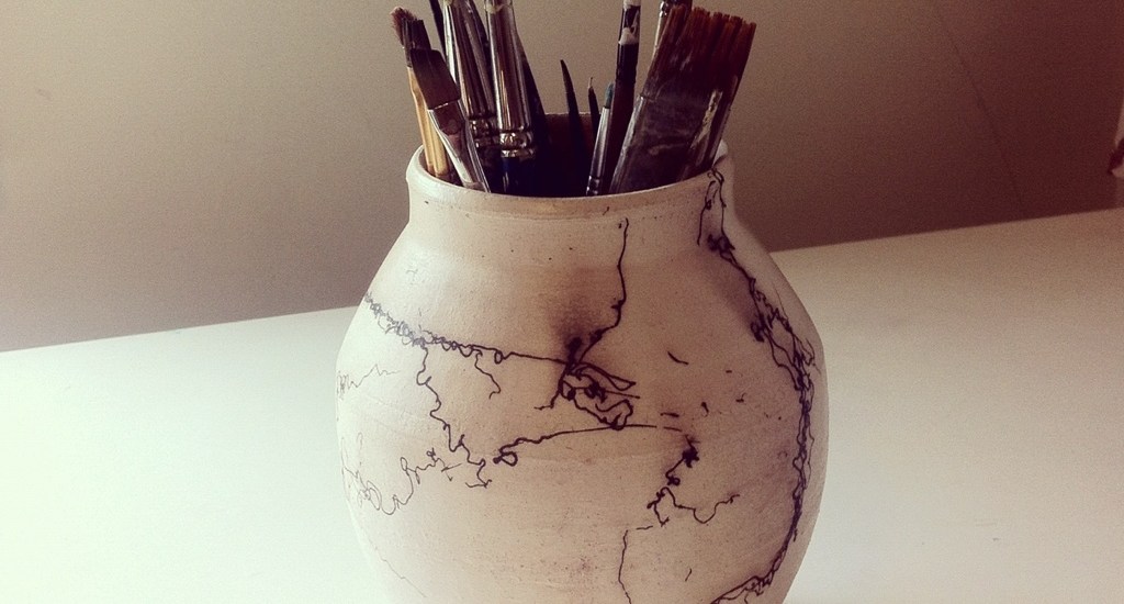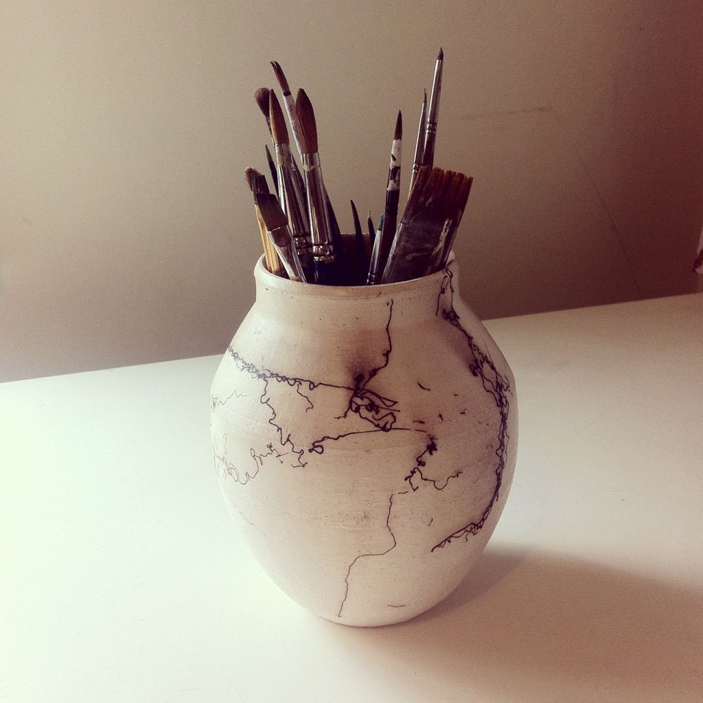 I keep all my favorite brushes in this beautiful horse hair ceramic piece by Thomas Quayle. It’s so nice to be surrounded by such pretty things when I’m painting. You can find more of his beautiful work at thomasquayle.wordpress.com