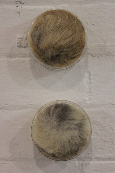 We Carry Our Wounds – Coyote fur scraps, petri dish installation, http://www.leacockgallery.com