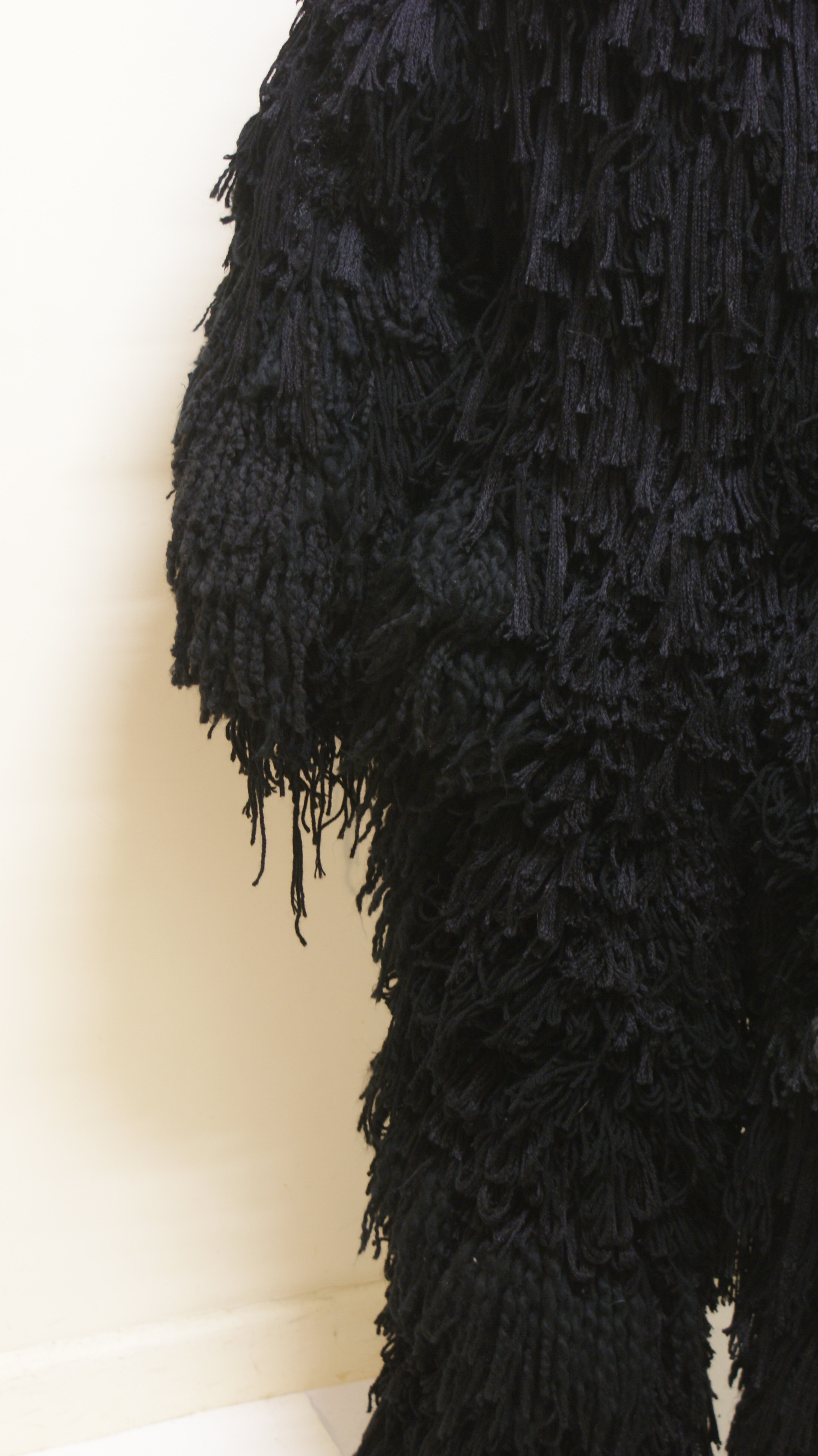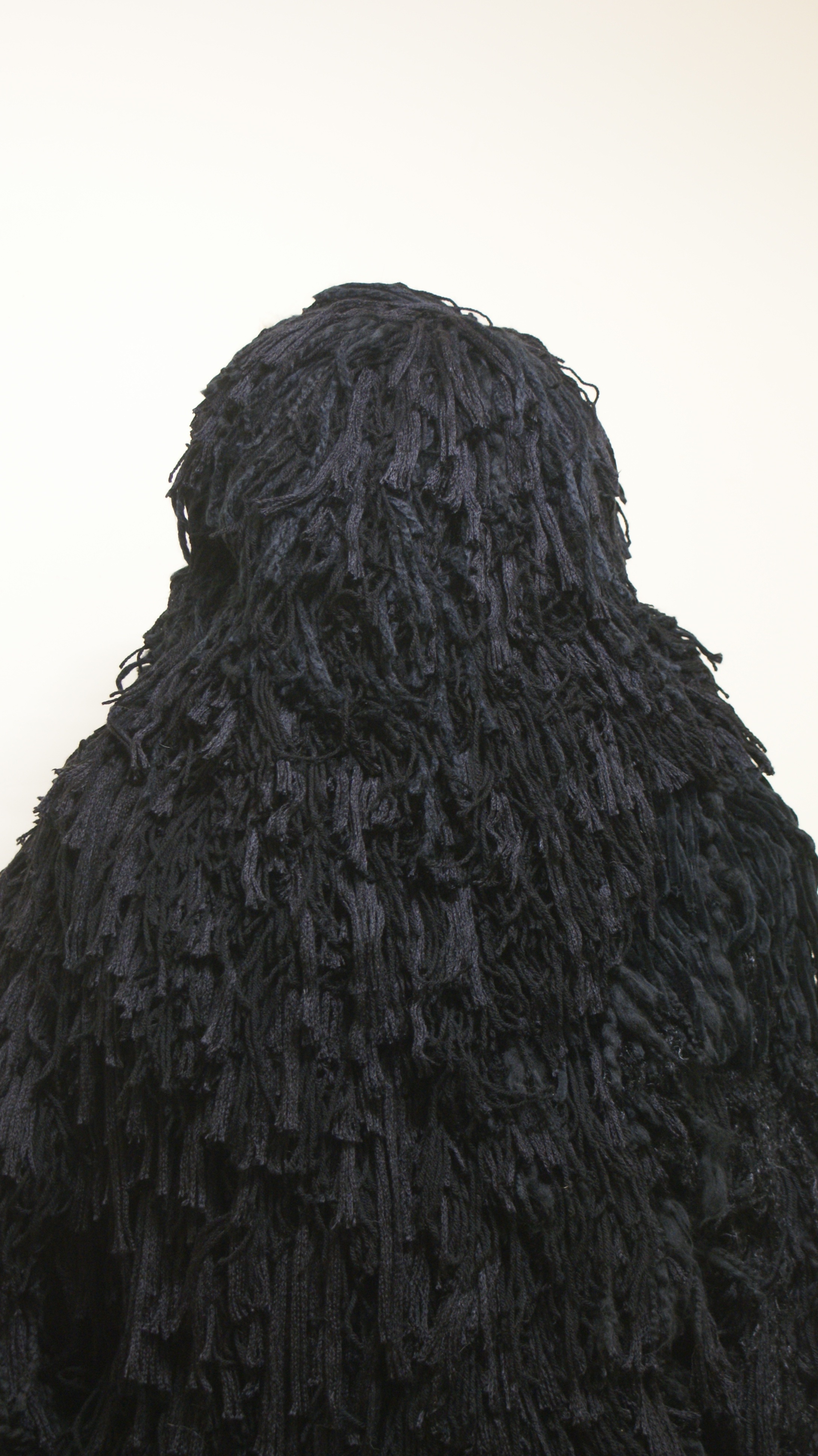 This is an ongoing project, I am constantly collecting wool and other black materials to create more ghillies and objects. I am working toward creating a room installation habitat. Any relevant material donations, offcuts of wool etc are always very welcome.